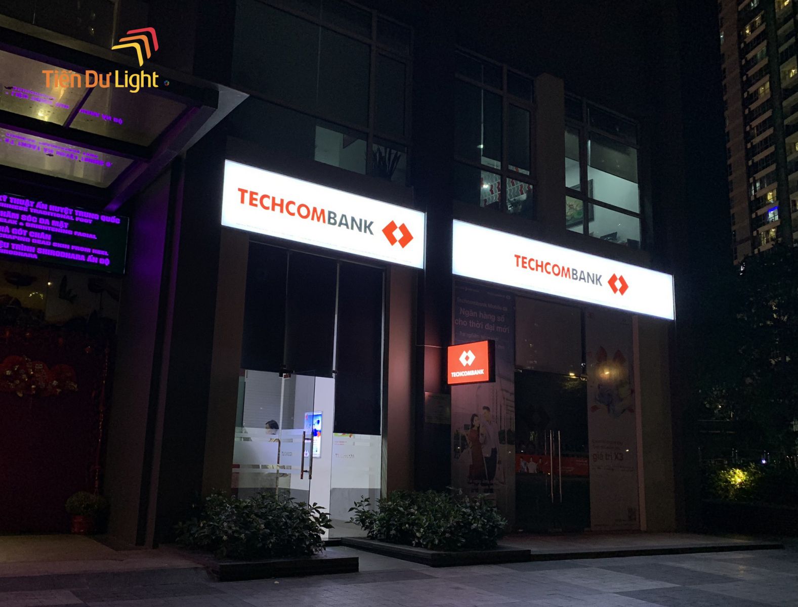 Biển hiệu mái sảnh ngân hàng Techcombank