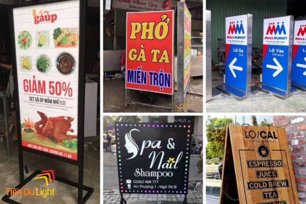 - Bảng hiệu đứng nhỏ: 60 x 160cm (phù hợp vỉa hè hẹp, cửa hàng nhỏ).