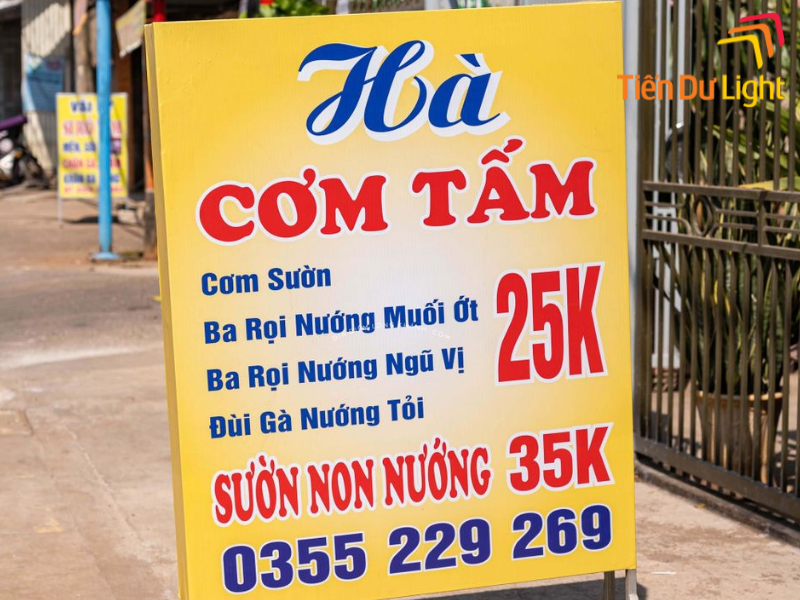 - Kinh nghiệm lâu năm: Tiến Dư Light đã thực hiện hàng nghìn mẫu bảng hiệu cơm tấm, từ biển bạt 3M, hộp đèn LED, alu chữ nổi đến biển gỗ CNC truyền thống, phù hợp với mọi quy mô quán.