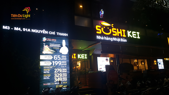 - Biển chữ nổi quảng cáo: Sử dụng các vật liệu như mica, inox hoặc alu để tạo chữ nổi trên bề mặt, mang lại cảm giác sang trọng, dễ đọc và phù hợp với nhiều phong cách nhà hàng.